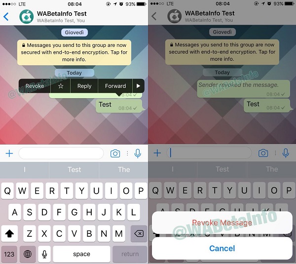 ilə tətbiq üzərindən istənmədən ya da səhv şəxsə atılan mesajlar ləğv edilə