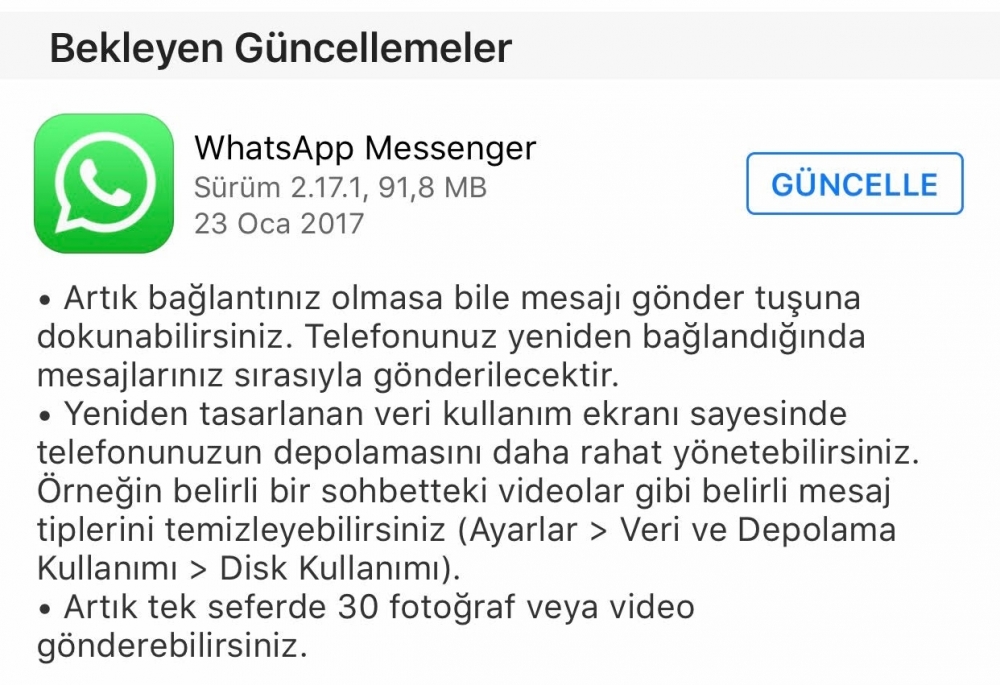 göndərə bilərkən, bu yenilənmə ilə 30 şəkil və ya video göndərmək mümkün hala gətirildi.