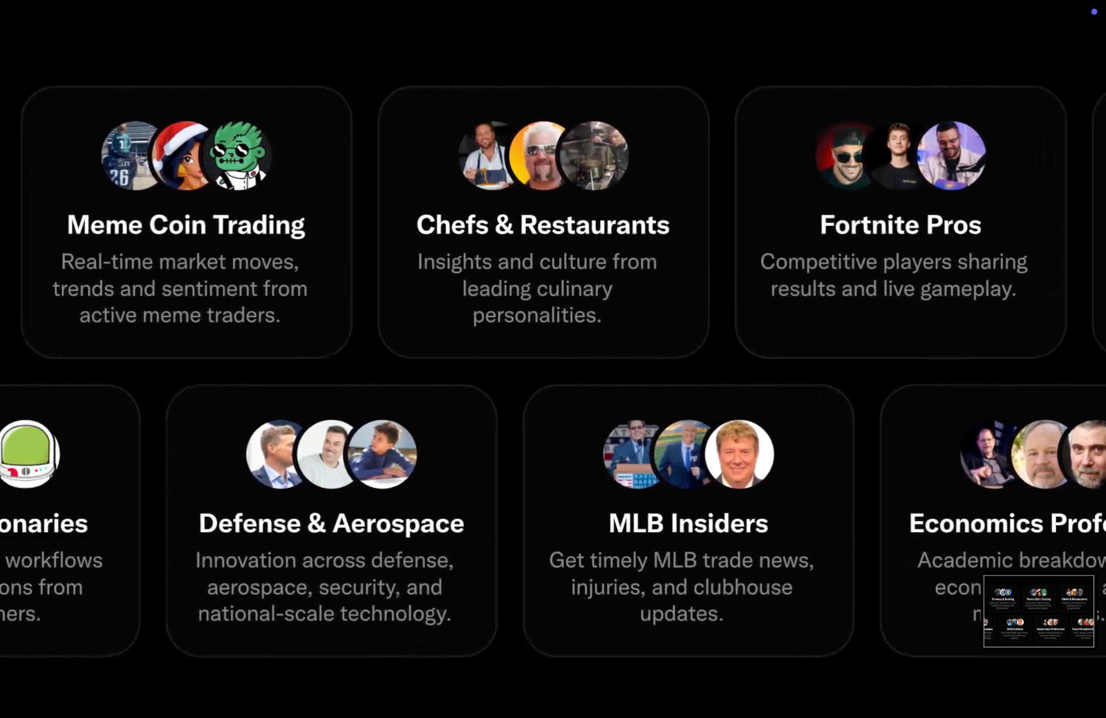 X isə fərqli yanaşma seçib: platforma bu siyahıları istifadəçilərə buraxmaq əvəzinə, onları mərkəzləşdirilmiş şəkildə özü tərtib edir. Bier bildirib ki, X komandası “dünyanın hər yerində, hər sahədə ən yaxşı paylaşımları edən hesabları” seçərək yeni istifadəçilər üçün maraq kateqoriyalarına uyğun paketlər yaradıb.