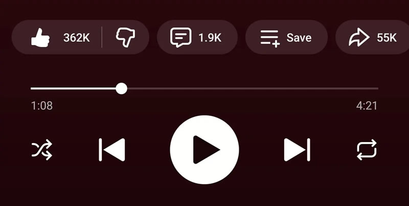 “Bəyənmə”, “Şərhlər” və “Yadda saxla” düymələri indi vahid bir bloka birləşdirilib. Mobil cihazlarda, xüsusilə üfüqi rejimdə, əsas dəyişikliklər idarəetmə elementlərinin əksəriyyətinin ekranın sol hissəsində vahid blok şəklində toplanması ilə bağlıdır. Bundan əlavə, YouTube artıq YouTube Music-də istifadə olunan standart əməliyyatlar üçün ikonlar toplusunu da yeniləyib. “Bəyənmə” düyməsinə kliklədikdə bəzi videolarda dinamik vizual effektlər görünür: məsələn, musiqi klipləri üçün animasiyalı nota, idman məzmunu üçün isə oyundan götürülmüş vizual elementlər.