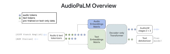 Google şirkətinin süni zəka sahəsindəki növbəti məhsulu AudioPaLM adlı multimodal dil modeli olub. Sözügedən dil modeli mətn formatında olan kontentlərlə yanaşı danışıq nitqini də tərtib və emal edə bilir. Bununla yanaşı bu dil modeli əsasında çalışan neyron şəbəkəsi həm səs vasitəsilə ünsiyyət qura həm də yüksək dəqiqliklə digər dillərə tərcümə edə bilir. AudioPaLM multimodal dil modeli PaLM-2 adlı böyük dil modelinin imkanları ilə AudioLM adlı audio modelin imkanlarının birləşdirilməsi hesabına ərsəyə gəlib.