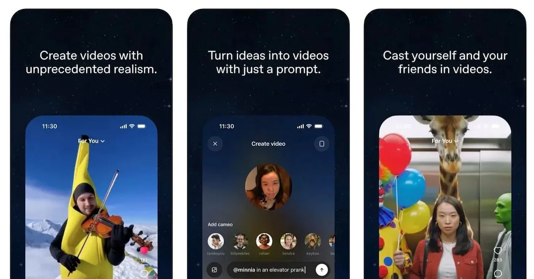 Video və audio generasiyası üçün universal sistem kimi, Sora 2 mürəkkəb fon səs landşaftlarını, danışığı və səs effektlərini yüksək dərəcədə realistik şəkildə yarada bilir. Bunun üçün qısa bir video yazısı kifayətdir: model zahiri görkəmi, mimikanı və hətta səsi dəqiq şəkildə təkrarlayır və onları istənilən səhnəyə təbii şəkildə inteqrasiya edir. OpenAI-in press-relizində qeyd olunur ki, bu imkan universaldır və istənilən insan, heyvan və ya obyekt üçün işləyir. Sora 2-nin təqdimatı ilə eyni vaxtda OpenAI sosial iOS tətbiqi olan Sora-nı da istifadəyə verir. Burada istifadəçilər videolar yarada və dostları ilə bölüşə, həmçinin bir-birinin işlərinə remiks edə, fərdiləşdirilə bilən Sora lentində yeni videolar tapa və cameo funksiyası vasitəsilə özlərini və ya dostlarını əlavə edə biləcəklər.
