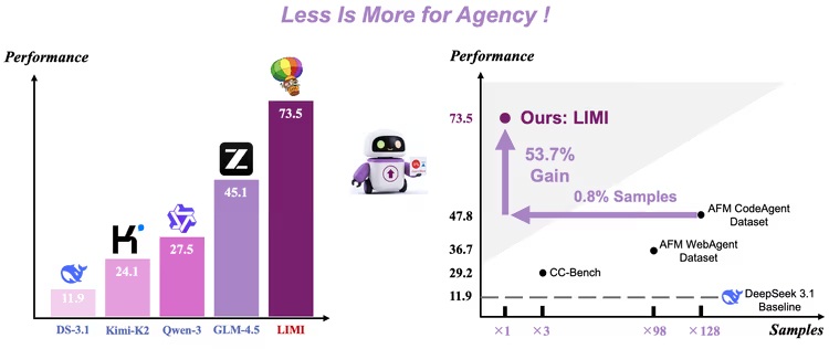 Üstəlik, bir çox sahələrdə məlumat məhduddur, əldə olunması çətindir və toplanması çox bahalıdır. Digər sahələrdə aparılan tədqiqatlar bunun mütləq belə olmadığını göstərir. Məsələn, 2023-cü ildə dərc olunmuş bir məqalədə göstərilib ki, model cəmi 1000 diqqətlə seçilmiş nümunə üzərində öyrədilsə belə, yüksək səmərəlilik göstərə bilər. Komandanın hazırladığı LIMI (Less Is More for Intelligent Agency - “intellektual agentlər üçün az çox deməkdir”) adlı framework də eyni prinsipi əsas götürür. Təcrübələr zamanı tədqiqatçılar müəyyən ediblər ki, cəmi 78 diqqətlə seçilmiş nümunədən ibarət kiçik, lakin keyfiyyətli məlumat toplusu ilə onlar minlərlə nümunə üzərində öyrədilmiş modelləri əsas göstəricilər üzrə xeyli qabaqlayan böyük dil modelləri əldə edə biliblər. Framework-un əsas elementi agent tapşırıqları üçün yüksək keyfiyyətli nümunələrin toplanmasını təmin edən xüsusi bir “boru xəttidir”.