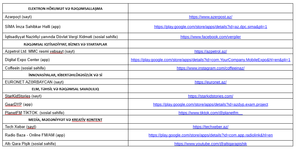 İnformasiya tərəfdaşları: Report.az, Infocity.tech, Technote.az, Oxu.az, “Kaspi”, Baku.TV, Baku.ws, Media.az, Radio Enerji, Kazzımli Photography, Sapunov Online, ALR Media