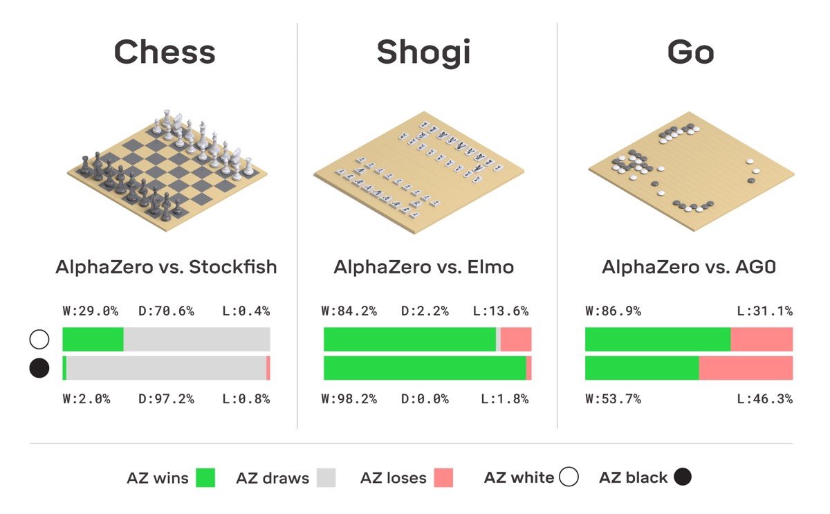 Beləliklə yeni yaradılmış AlphaZero adlı alqoritm 3 növ stolüstü oyunu öyrənməyə qadirdir: Şahmat, go və yapon şahmatı olan şogi. AlphaZero daha balanslaşdırılmış və idealdır. Belə ki, cəmi 3 gün ərzində bu alqoritm heç bir insanın köməyi olmadan yalnız sözügedən 3 növ stolüstü oyunun qaydaları ilə tanış olaraq həmin oyunlarda məharətli oyunçuya çevrilib. “Oyunda olan tamamilə təsadüfi hallardan başlayaraq AlphaZero ən yaxşı oyun partiyasının necə olacağı təsəvvürünə sahib olur. O, oyun barəsində öz qiymətləndirməsini yaradır. Bu məsələdə o, strategiyanın qurulması üzrə düşünən insanlarda yaranan məhdudlardan azaddır” – deyə DeepMind-ın həmtəsisçisi Demis Hassabis bildirib. Məhz bu özəllik AlphaZero-nu AlphaGo-dan fərqləndirir.