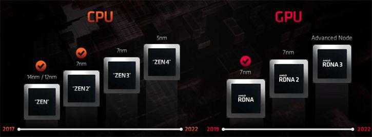 AMD şirkəti bir sonrakı Zen 4 və RDNA 3 çip arxitekturaları üçün xüsusi optimizasiya edilmiş 5 nm istehsal texnologiyası istifadə edə bilər. Bilindiyi kimi Zen arxitekturası AMD prosessorlarda, RDNA arxitekturası isə AMD videokartlarda istifadə olunur. Hal-hazırda Zen 3 və RDNA 2 arxitekturaları 7 nm+ hazırlanması planlanır. Lakin onlardan sonra gələcək olan Zen 4 və RDNA 3 arxitekturaları 5 nm istehsal texnologiyası ilə hazırlanacaq.