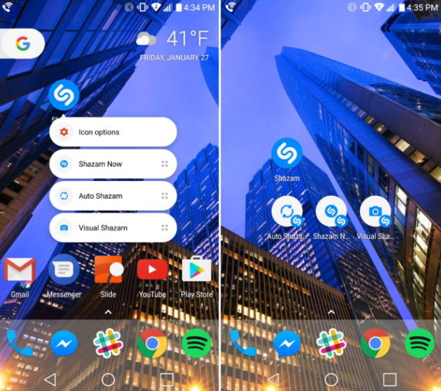 tutduğunuzda Auto Shazam, Shazam Now və Visual Shazam xüsusiyyətləri ortaya