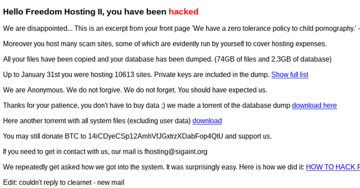 açıqladılar. "Freedom Hosting II” adlı hostinq firmasının private key olaraq