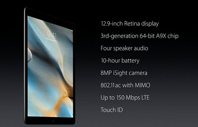 dioqanalı 12.9 dyüm, 5.6 milyon pikseldir. iOS 9-da gözlənilən bütün yenilikləri