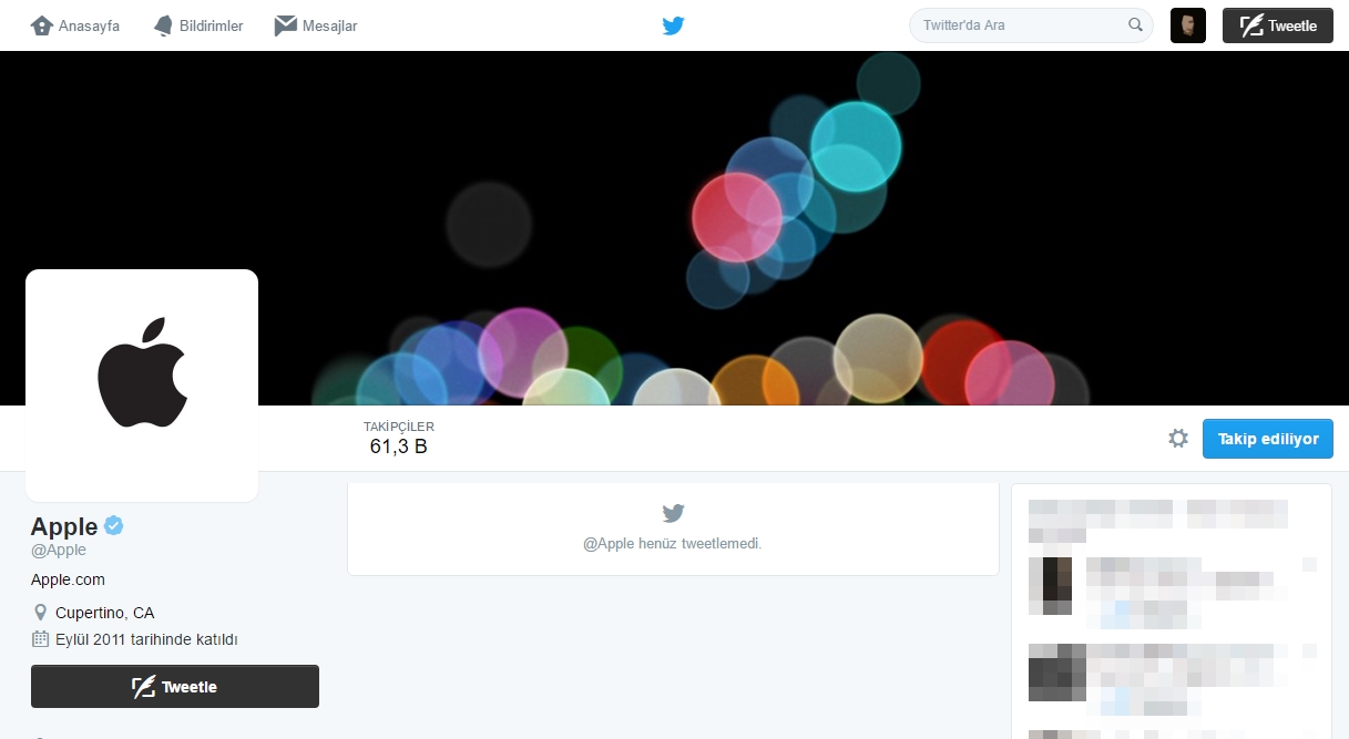 olmayan "Apple", Twitterdə özünün ilk rəsmi hesabını açıb.