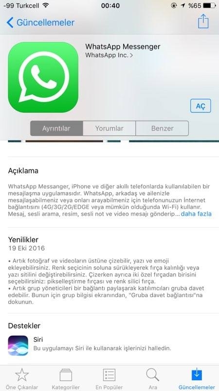 Müəyyən müddət əvvəl Android platformalarına gələn WhatsApp yenilənməsi artıq iOS platformasında da yerini alıb. Bundan əlavə bir çox yeniliklər də istifadəyə verilib