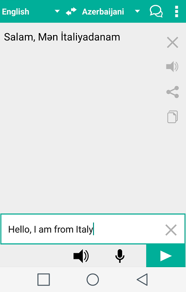 2. Tərcümə etdiyiniz söz yaxud mətnləri səsləndirmə imkanı sözlərin düzgün oxunuş qaydasını bilməkdə sizə böyük kömək olacaq. İngilis, Rus, Türk və Azərbaycan dillərində səsləndirmələr mövcuddur.