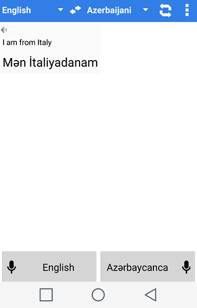 4. Əcnəbi ilə söhbət rejimi bu tətbiqin ən maraqlı və diqqət çəkən funksialarındandır. Siz bu rejimə keçid etməklə seçdiyiniz dilə uyğun nitq səsləndirirsiniz və proqram avtomatik olaraq nitqi analiz edib onu tərcümə etmək istədiyiniz dilə çevirir və səsləndirir. Xüsusilə bu funksiya xaricilərlə ünsiyyət zamanı sizin köməyinizə çatacaq.