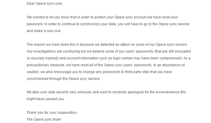Bütün Opera istifadəçilərinin 0.5%inin daxil olduğu bildirilsə də, əgər bir Opera hesabınız varsa, şifrənizi təcili olaraq dəyişdirməyinizi məsləhət görürük!