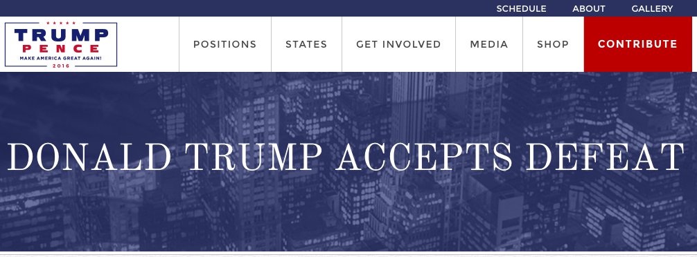 defeat” yəni "donald trump uduzduğunu qəbul edir.” kimi ifadələr paylaşılıb.