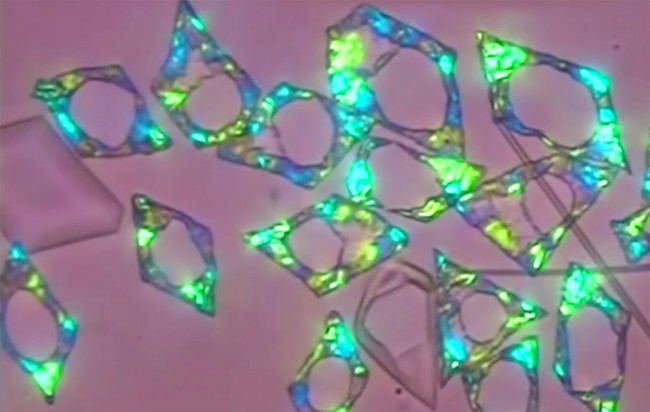 Bu parıldayan təəccüblü formalar hansısa komputer oyununa bənzəyə bilər. Əslində isə şəkildə gördüyünüz formasını dəyişən materialların gələcəyi ola bilər. Britaniyalı və bolqariyalı alimlər aşkar ediblər ki, neft damcısını yavaş şəkildə donduranda o üçbucaqlı, səkkizbucaqlı və digər formalara çevrilir. Bundan əlavə olaraq damcını qızdırmağa başlayanda o əvvəlki formasına qayıdır.