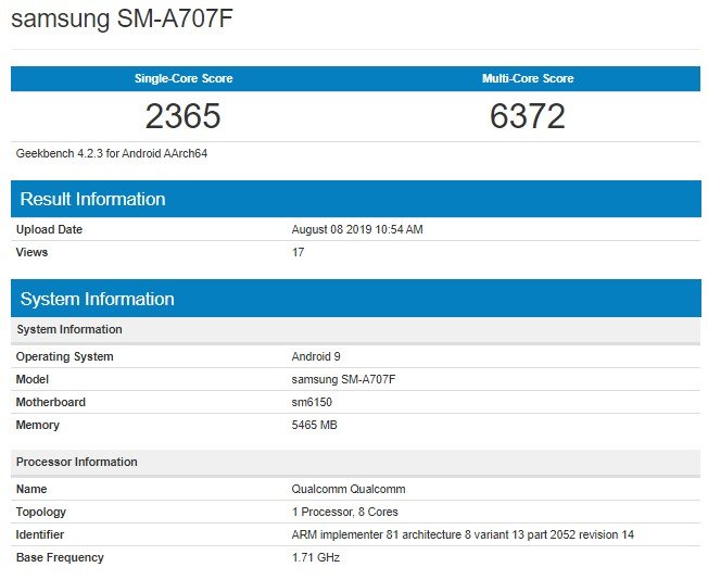 Biz artıq dəfələrlə xəbər vermişdik ki, Samsung şirkəti Galaxy A70 smartfon modelinin daha təkmilləşdirilmiş versiyası üzərində çalışır. Söhbət, Galaxy A70s modelindən gedir. İndi isə bu məlumat Geekbench bençmark saytı vasitəsilə təsdiqləndi. Belə ki, sözügedən smartfon Geekbench testindən keçib. Bu barədə Gagadget saytı xəbər verib.