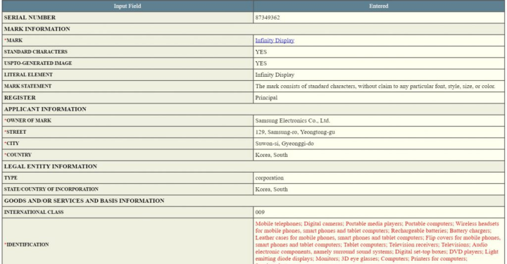 gördüyünüz yeni bir müraciət, Samsung adına göndərilən patent müraciəti "Infinity