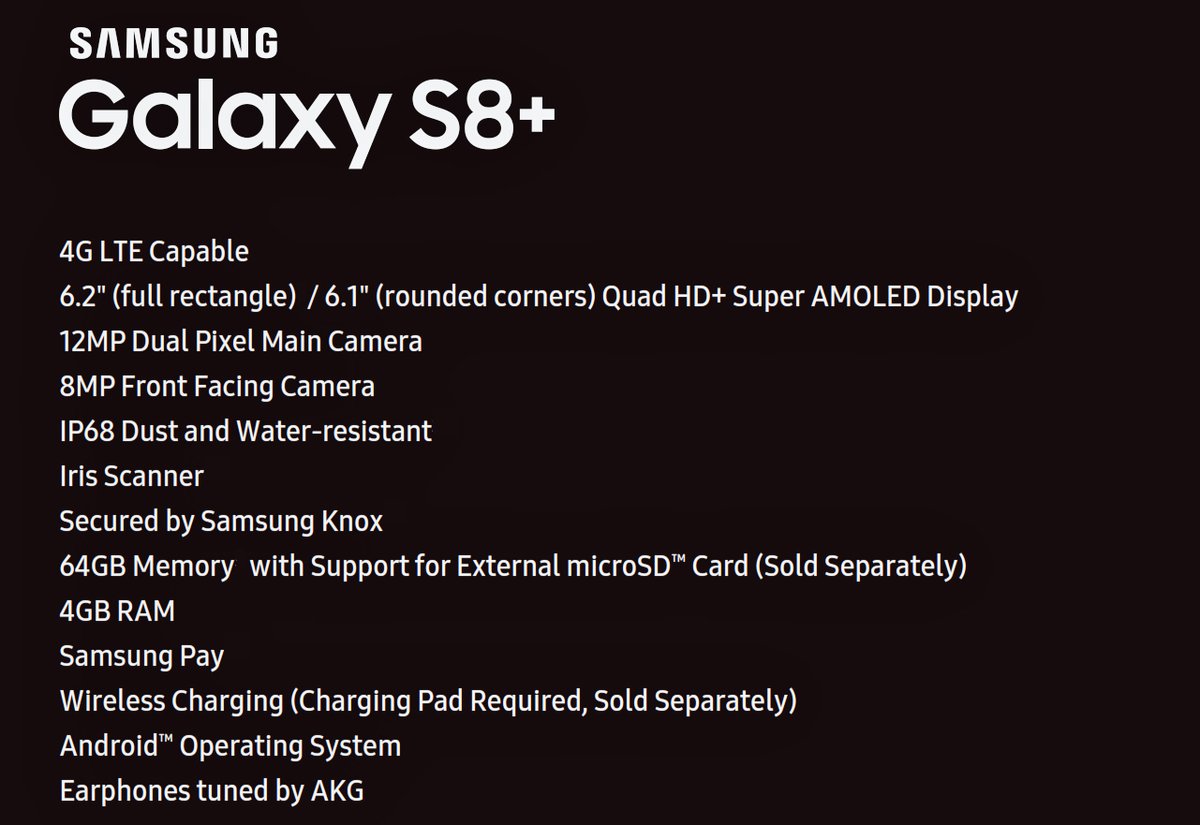 olunacaq. Bundan əlavə olaraq Galaxy S8 Plus göz qişası skanı və naqilsiz şarj