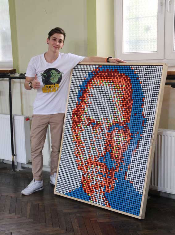 Ukraynalı tələbə Aleksandr Lutsyuk kubik rubikdən Stiv Cobs-un (Steve Jobs) portretini hazırlayıb. Öz əl işini o iPhone 7-nin satışa çıxmasına həsr edib.