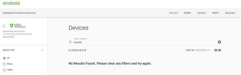 Bundan əlavə olaraq Android Enterprise Recommended də bu cür təmizlənməyə məruz qalıb. Android Enterprise Recommended Google şirkətinin tələblərini ödəyən və şirkətin dəstəyini əldə edən Android smartfonların tövsiyyə olunan siyahısıdır. Daha öncə həmin siyahıda Mate 10 və P10 seriyaları da daxil olmaqla Huawei şirkətinin bir sıra smartfon modelləri yerləşirdilər.
