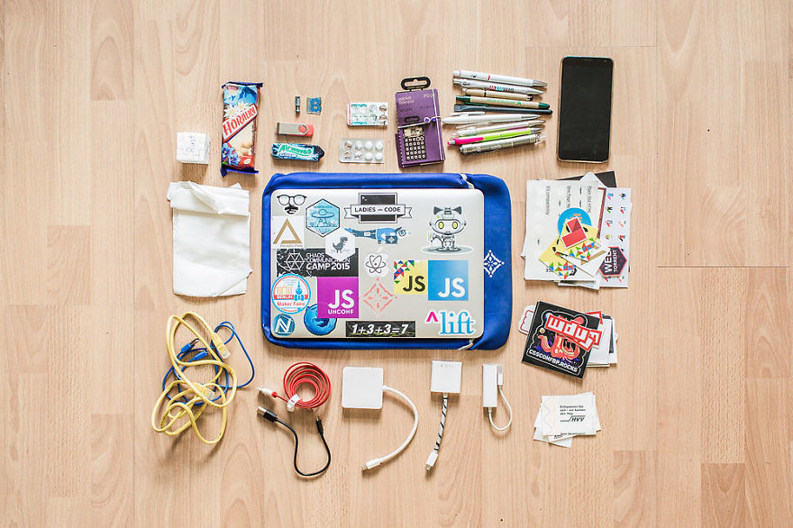 Bir çox insanlar hackerləri evdən çıxmayan və hər zaman qara gödəkçə geyinən şəxslər kimi təsəvvür edirlər. Fotoqraf Martin Haburay (Martin Haburaj) hackerlərin çantalarına nəzər salaraq onların daxilində hansı əşyaların yerləşdiyini öyrənmiş və fotolarını çəkmişdir.