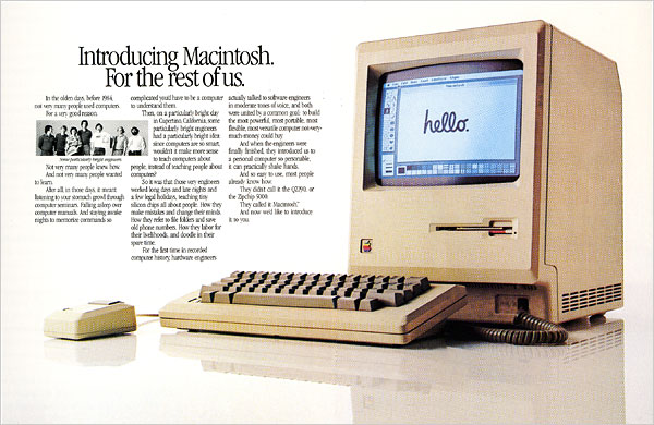 ildə "Apple” ilk Macintosh modelinin çap reklamını təqdim etdiyi zaman səsləndirilmişdir. Təqdim edilmiş ilk model adi əmr sətri
