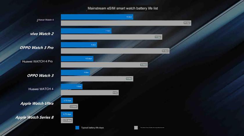 Bir neçə gün bundan öncə Honor şirkəti rəsmi olaraq bildirdi ki, 12 iyul tarixində baş tutacaq təqdimat tədbirində təqdim olunacaq yeni məhsullardan biri də Honor Watch 4 smart saatı olacaq. İndi isə sözügedən smart saat barəsində yeni məlumatlar ortaya çıxıb. Artıq məlumdur ki, Honor Watch 4 smart saatı eSIM dəstəyini əldə edəcək. Ortaya çıxmış yeni məlumata əsasən isə smart saat bir dəfə şarj olunandan sonra 10 gün ərzində çalışa bilkəcək. Müqayisə üçün qeyd etmək lazımdır ki, eSIM-in aktiv olduğu halda vivo Watch 2 smart saatı 7 gün, OPPO Watch 3 Pro 5 gün, Apple Watch Series 8 isə 1 gün ərzində çalışa bilir. Bununla yanaşı Honor Watch 4 düzbucaqlı formada ekrana sahib olacaq.