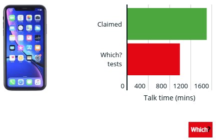 Məsələn danışıq zamanı 23 saat ərzində enerji saxmalı olan iPhone XR modeli sadəcə olaraq 16 saat 52 dəqiqə dözüb. Şərtlərdən asılı olaraq göstəricilər şirkətin söz vediklərindən 18-51% aşağı olublar. HTC smartfonları ilə vəziyyət bir qədər yaxşıdır. Ortalama HTC smartfonları şirkətin söz verdiyi 20.5 saatdan 1 saat az çalışırlar. Bununla belə testdə iştirak etmiş HTC modellərinin adlarını Which? assosiasiyası qeyd etməyib. Nokia, Samsung və Sony smartfonları yaxşı nəticələr sərgiləyiblər. Belə ki, onların avtonom çalışma müddətləri hətta şirkətlərin söz verdikləri göstəricilərdən daha çoxunu sərgiləyiblər. Məsələn Xperia Z5 Compact smartfonu şirkətin söz verdiyi 17 saat əvəzinə 26 saat çalışıb.