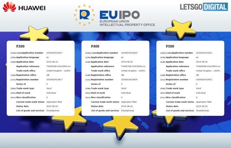 Görünür, Huawei şirkəti özünün P flaqman seriyasının adında bəzi dəyişikliklər etməyi qərara alıb. Belə ki, şirkət İngiltərənin intellektual mülkiyyət üzrə agentliyində 3 yeni ticarət nişanını qeydiyyatdan keçirdib: P300, P400 və P500. Qeydiyyatdan keçirilmiş bu ticarət nişanları 9-cu səviyyəli məhsullara (smartfon, planşet) aid edilir. Bu barədə Letsgodigital saytına istinadən Gagadget saytı xəbər verib.