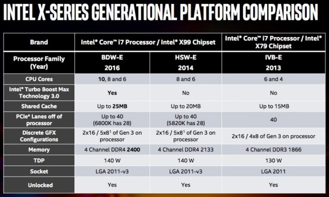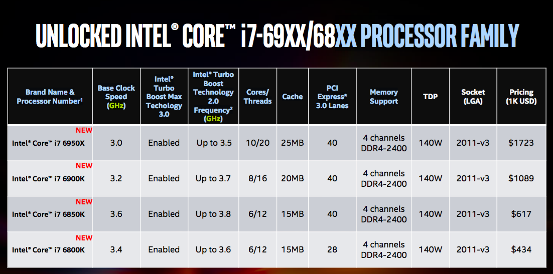 nüvəli i7-6850K və $434 qiymətində i7-6800K prosessorları daxil olacaq. Yeni