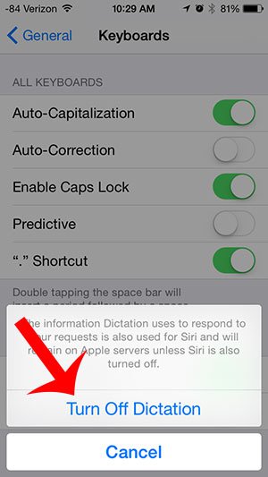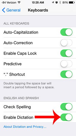 4. Menyunun lap aşağısında Enable Dictaion funksiyasını söndürün:
