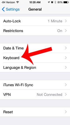 3. Ekranı aşağı endirib Keyboard bölümünü tapın: