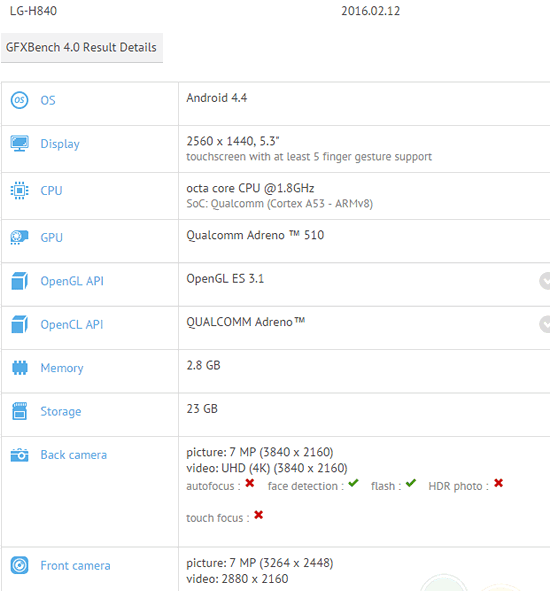 Növbəti smartfonundan sonra LG ona bənzəyən amma sadə göstəricilərə malik smartfon təqdim etdi. Artıq yeni smartfon haqqında məlumatlar GFXBench testində öz yerini alıb, modelin adı isə LG-H840 olaraq qeyd edilib.