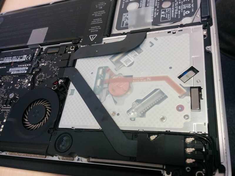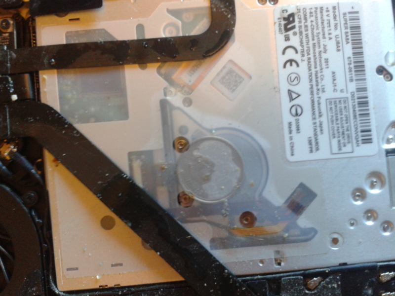 MacBook-u yığanlar onun cihazının optik diskoxuyucu hissəsinə qəpik qoyublar. Bəlkədə onlar bunu diskoxuyucunun balanslaşması və ya onun təsbit