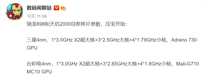 Digital Chat Station ləqəbli məşhur çinli insayder Snapdragon 898 ilə MediaTek Dimensity 2000 prosessorlarının sahib olacaqları əsas özəlliklər barəsində məlumat verib. İnsayderin sözlərinə əsasən hər iki prosessor aparıcı texnoloji proses əsasında hazırlanacaq. Beləliklə verilmiş məlumata əsasən Snapdragon 898 prosessoru Samsung şirkətinin 4 nanometrlik texnoloji prosesi əsasında, Dimensity 2000 prosessoru isə TSMC şirkətinin 4 nanometrlik texnoloji prosesi əsasında hazırlanacaq.