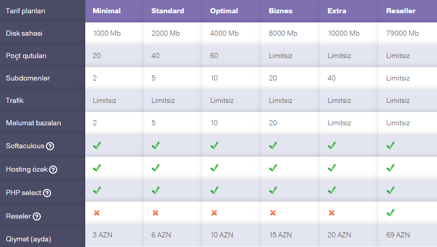 uyğun hosting paketini seçmək sizə qalıb.