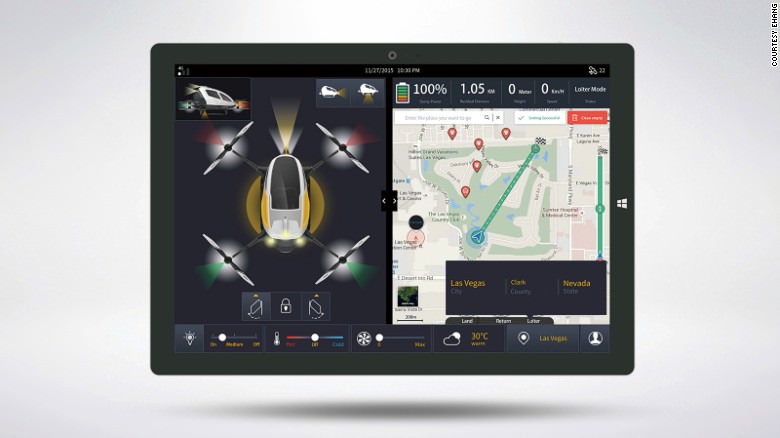 Uçan taxi sərnişinləri gəmiyə mindikdən sonra qarşılarında olan elektron löhvə ilə gedəcəkləri ərazini və yeri təyin edirlər.