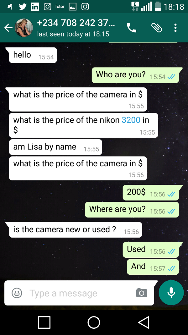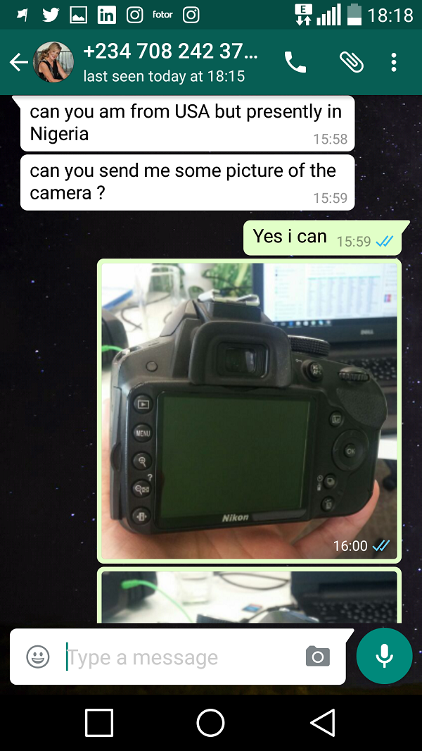 sonra fotoaparatın bir neçə şəkilini də göndərməyimizi istədi. 200$ qiymət