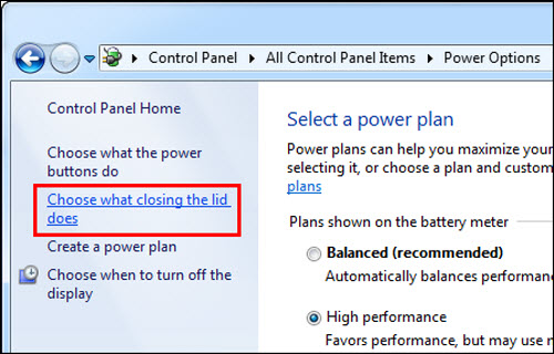 4. Sol menyudan "Choose what closing the lid" does seçin