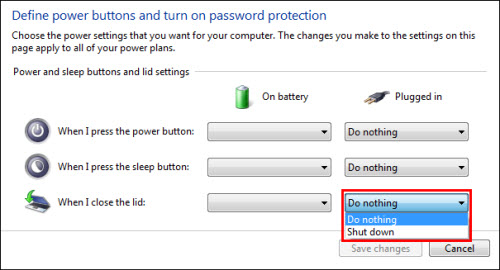 5. "When I close the lid" seçimində həm batareya, həmdə enerjiyə qoşulu rejim üçün "do nothing" seçin.