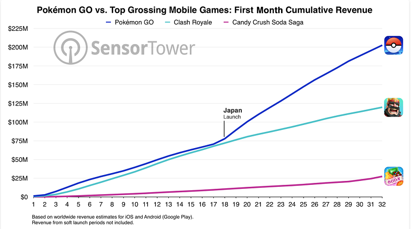 Şirkətin mütəxəssisləri bildiriblər ki, oyunun yaradıcısı "Niantic Labs” studiyası bir ay ərzində 200 milyon dollar gəlir əldə edib. Qeyd edək ki, bu göstərici həm iOS həmdəki Android platformalarının ümumi nəticələri əsasında tərtib olunmuşdur. Technote.az-ın "Gagadget.com” saytına istinadən verdiyi xəbərə əsasən "Pokemon GO”, onun yaxın rəqibi "Clash Royale”-dan iki dəfə çox gəlir əldə edib. Bir vaxtlar bütün rekordları qırmış "Candy Crush Soda Saga” oyunu isə "Pokemon GO”-dan əldə olunmuş gəlir baxımından 7 dəfə geriləyir. Bundan əlavə olaraq "Sensor Tower” mütəxəssisləri hesablayıblar ki, orta statistik "Pokemon GO” oyunçusu gün ərzində 26 dəqiqəsini oyunda keçirdir. Qeyd etmək lazımdır ki, oyunun əldə edəcəyi gəlir getdikcə artacaq. Belə ki, keçən həftə "Pokemon GO” 15 Asiya ölkəsində rəsmi olaraq aktiv olunub.