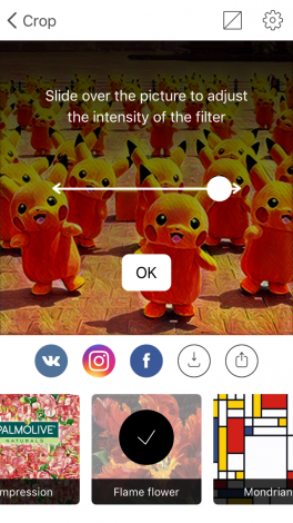 orijinal foto ilə filtr qarışığının səviyyəsinə nəzarət etmək mümkündür. Həmçinin tətbiq