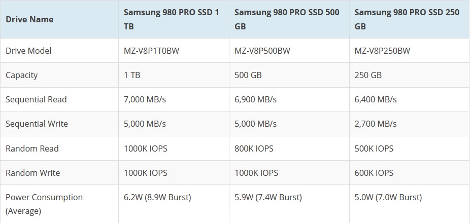 Samsung şirkəti istehsal etdiyi çiplər və SSD-lər ilə ekosistemdə öz fərqini ortaya qoyur. Keçən il təqdim etdiyi həm performansı, həm uzun ömrü ilə bilinən 970 Pro SSD-sinin yeni versiyası olan 980 Pro təqdim edildi. Yeni SSD-nin 3 fərqli yaddaşa malik versiyası olacaq: 250 GB, 500 GB və 1 TB. Qeyd edək ki, bu SSD PCİe 4.0 interfeysini dəstəkləyir. Bu o deməkdir ki, bu cihaz ekosistemdəki ən yenə və ən sürətli ötürmə protokoluna malikdir.