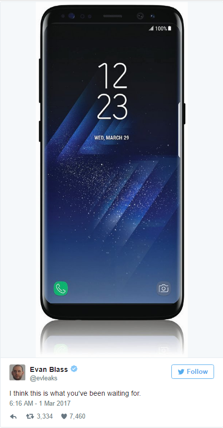 Samsung Galaxy S8-in fotosu Evan Blass tərəfindən internetə sızdırıldı