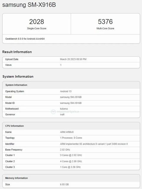 Yay fəslində Samsung şirkəti Galaxy Tab S9 planşet seriyasını təqdim etməlidir. Bu planşet seriyasına Galaxy Tab S9, Tab S9+ və Tab S9 Ultra modellərinin daxil olacağı gözlənilir. İndi isə məlum olub ki, Galaxy Tab S9 ilə Tab S9 Ultra modelləri Geekbench 6 testlərindən keçiblər. Geekbench 6 məlumatlarına əsasən sözügedən planşetlər Snapdragon 8 Gen 2 prosessoru ilə təchiz olunublar. Geekbench 6 testlərindən sözügedən planşetlərin 8 GB RAM-a sahib versiyaları keçib. Demək olar eyni texniki göstəricilərə sahib olmalarına baxmayaraq ən yaxşı test nəticələrini məhz Galaxy Tab S9 Ultra modeli sərgiləyib. Belə ki, o, Geekbench 6-nın bir nüvəli testi çərçivəsində 2028 xal, çox nüvəli testi çərçivəsində isə 5376 xal toplayıb. Adi Galaxy Tab S9 modelinə gəldikdə o, Geekbench 6-nın bir nüvəli testi çərçivəsində 1928 xal, çox nüvəli testi çərçivəsində isə 4727 xal toplayıb.