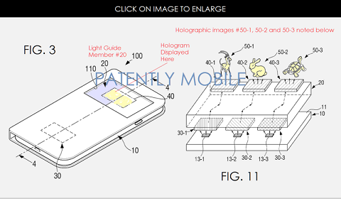 Samsung`un da bu şirkətdə keçən il patentləşdirdiyi texnologiyalardan biri bu yaxınlarda üzə çıxıb. Bunun maraqlı tərəfi isə patentin holoqrafik texnologiya kateqoriyasına ad olmasıdır. Amma bu holqrafik texnologiya filmlərdə yaxud oyunlarda gördüyünüz kimi tam bir holoqrafik proeksiya üçün deyil. Sxemlərdə gördüyümüz kimi bu texnologiyanın tətbiq olunacağı telefonun normal bir gövdəsi və normal bir ekranı var. Ancaq siz telefonun üstünə xüsusi bir işıq proeksiyası cihazı yerləşdirəcəksiniz ki, bu da ekrandakı obyektlərin bir parça şüşə içərisində havada süzülürmüş kimi 3D göstərilməsinə imkan yaradacaq.