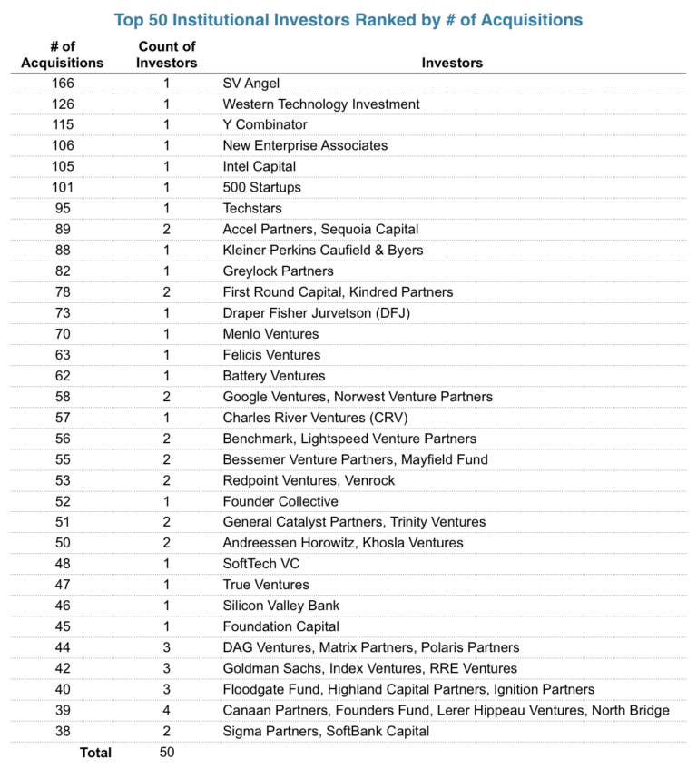 investorların sərmayə qoyduğu investisiyanın çıxış sayısına görə "SV Angel” siyahıya liderlik edir.