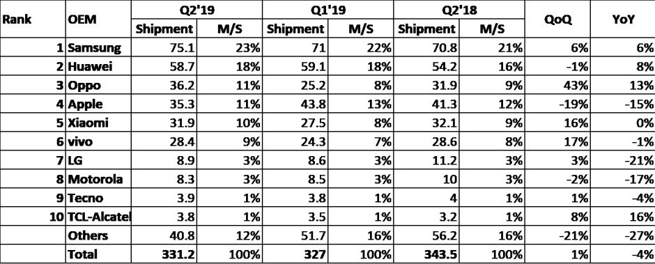 Mütəxəssislərin məlumatlarına əsasən hal hazırki rüb göstəricisinin yüksəlməsi nailiyyətinə yalnız Samsung ilə Huawei şirkətləri çata biliblər. Lakin Huawei bu rüb bəzi problemlər ilə qarşılaşa bilər. Belə ki, şirkətin ABŞ hökuməti ilə olan münasibətləri hələ də gərgin vəziyyətdədir. Buna baxmayaraq marketinq analitiklərində yekun bir fikir yoxdur. Məsələn Canalys, Strategy Analytics və Counterpoint şirkətlərinin hesabatları IHS Markit şirkətinin hesabatından fərqlənir. Onların hesabatlarına əsasən isə Apple şirkəti hələ də smartfon bazarının top üçlüyündə qalır.
