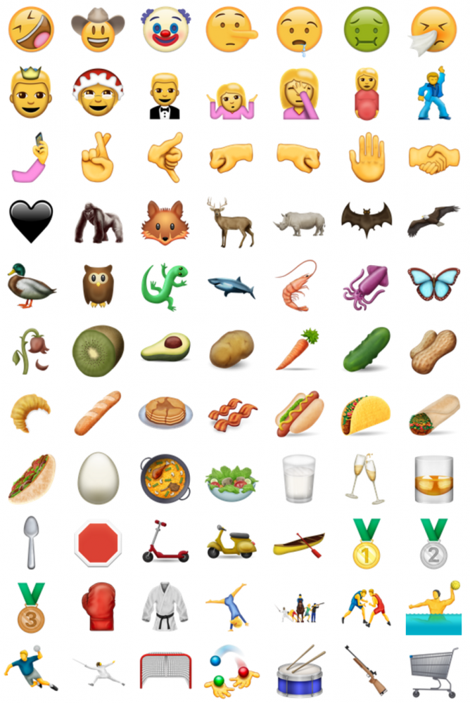 heyvanlar və s. emojiləri birləşdirir. Ümumi olaraq 77 yeni emoji Unicode 9